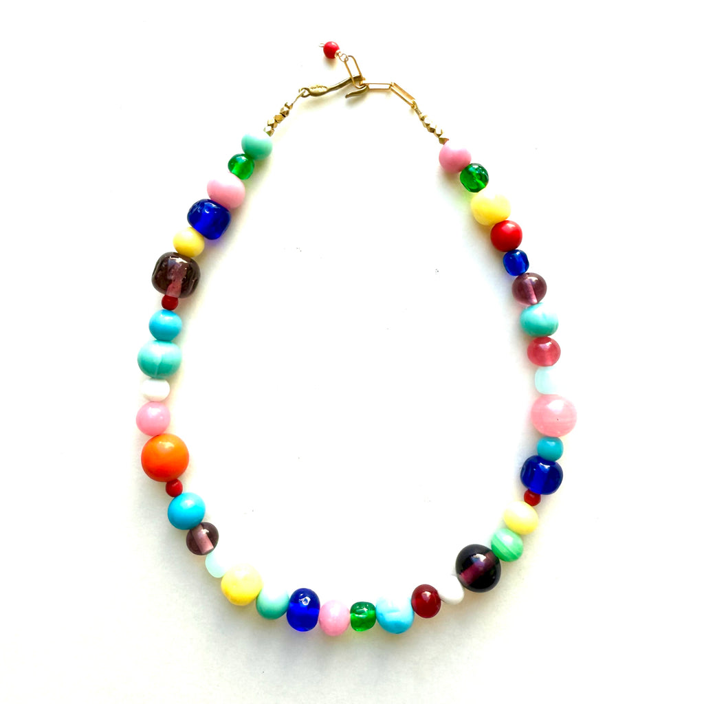 In celebration of our 22nd birthday, we decided a signature style was in order. Enter the Birthday Beads: unused glass beads from the 1940s and 50s that were made in Japan and shipped to the United States for use in costume jewelry produced by world-renowned companies along the East Coast before jewelry manufacturing moved entirely overseas. When those American companies shuttered, the materials in their warehouses went forgotten and unused until acquired by some of our favorite vintage vendors, which is how we discovered them over 20 years ago.
