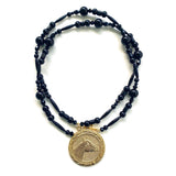 We snagged a pair of these vintage equestrian medals at auction and knew they'd make the perfect pendants for a wear-anywhere style, lovely for layering or fantastic on their own. Choose from vintage Japanese glass beads in happy hues (from an unused Miriam Haskell stash!) or more monochromatic in black onyx, crystal, and glass. Each measures 32" length (medallion is 2" diameter) with a gilt copper toggle clasp at back. Either way, a winner!